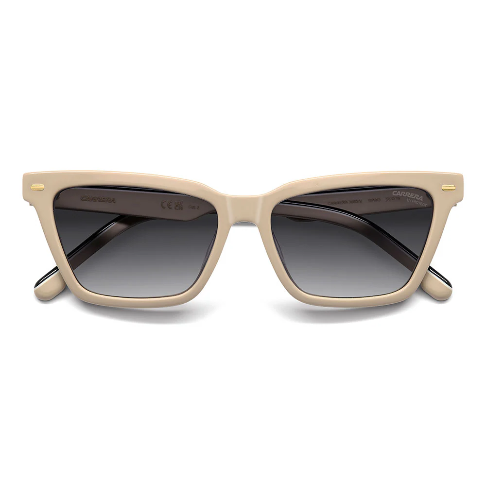 These Carrera women's sunglasses revisit a classic design with a contemporary twist. The model is distinguished by the modern lines of its cat-eye frames. The ivory option with multi-layer detailing is worth noting, recalling the iconic Grand Prix temple. The acetate frame features rivets and the embossed C logo, Carrera's signature metal elements.